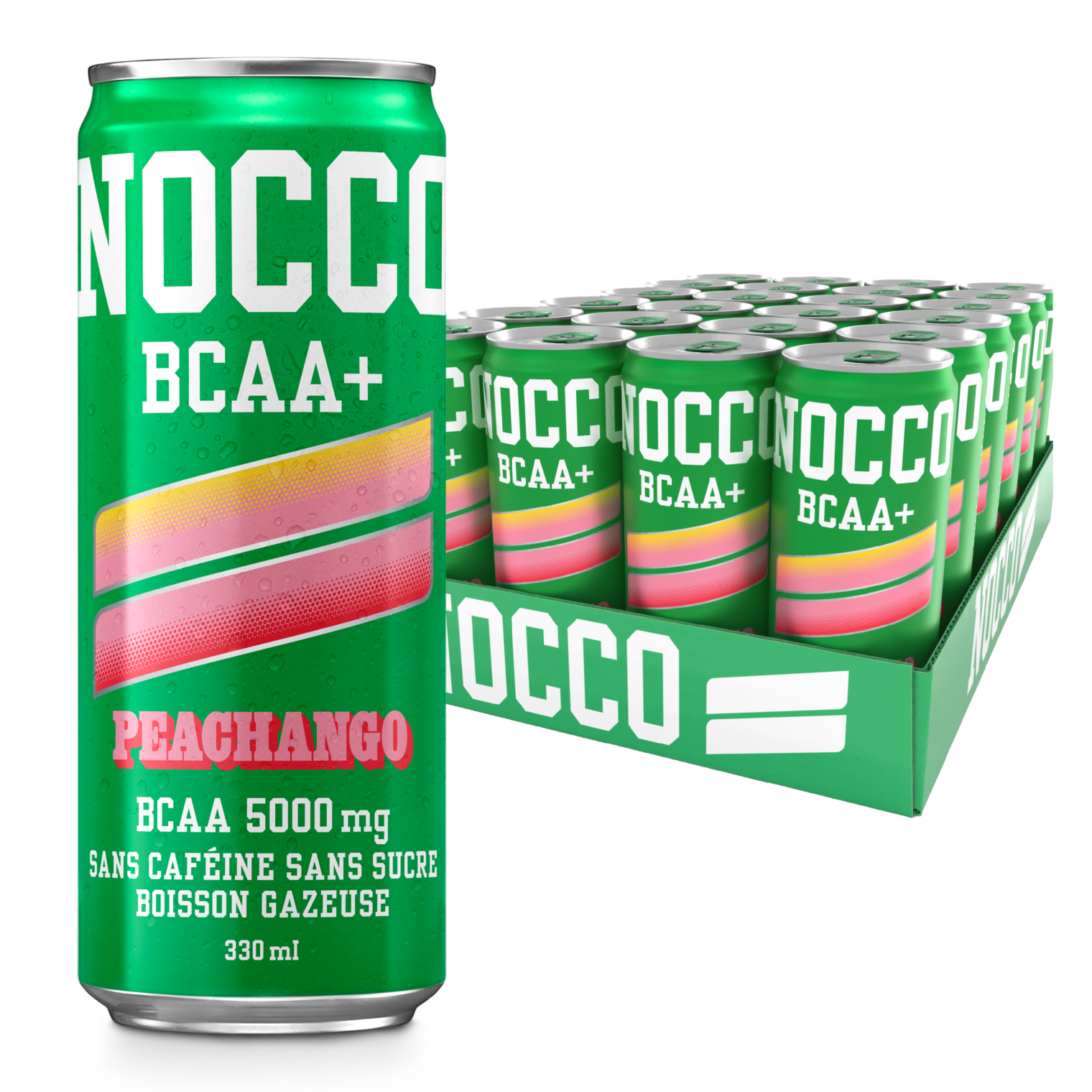 Plongez dans la fraîcheur fruitée avec NOCCO Peachango ! Savourez cette boisson gazeuse sans sucre, au délicieux goût de pêche et mangue. Enrichie en BCAA, sans caféine, 100 % vegan et remplie de vitamines essentielles. C’est la boisson idéale pour les entraînements en soirée ou pour une pause rafraîchissante à tout moment de la journée, avec une explosion de douceur tropicale !